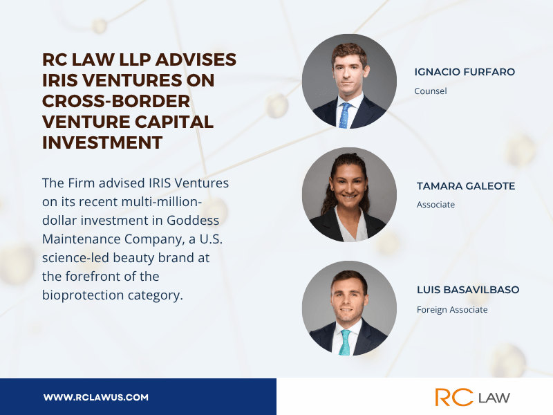 RC Law LLP acted as U.S. legal counsel to IRIS Ventures, a Spanish growth equity firm investing in purpose-driven consumer and lifestyle brands. The firm advised IRIS on its recent multi-million-dollar investment in Goddess Maintenance Company, a U.S. science-led beauty brand at the forefront of the bioprotection category.